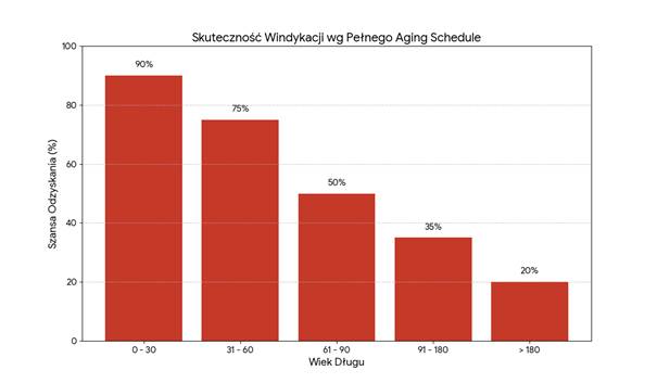 • przy opóźnieniach do 30 dni szanse na odzyskanie należności sięgają ok. 90%,